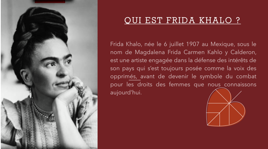 Née le 6 juillet 1907 au Mexique, Frida Kahlo est une artiste peintre qui défend la condition et l’émancipation des femmes mexicaines.