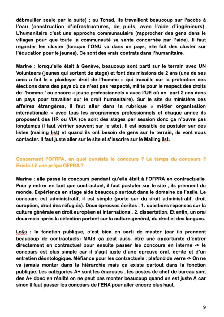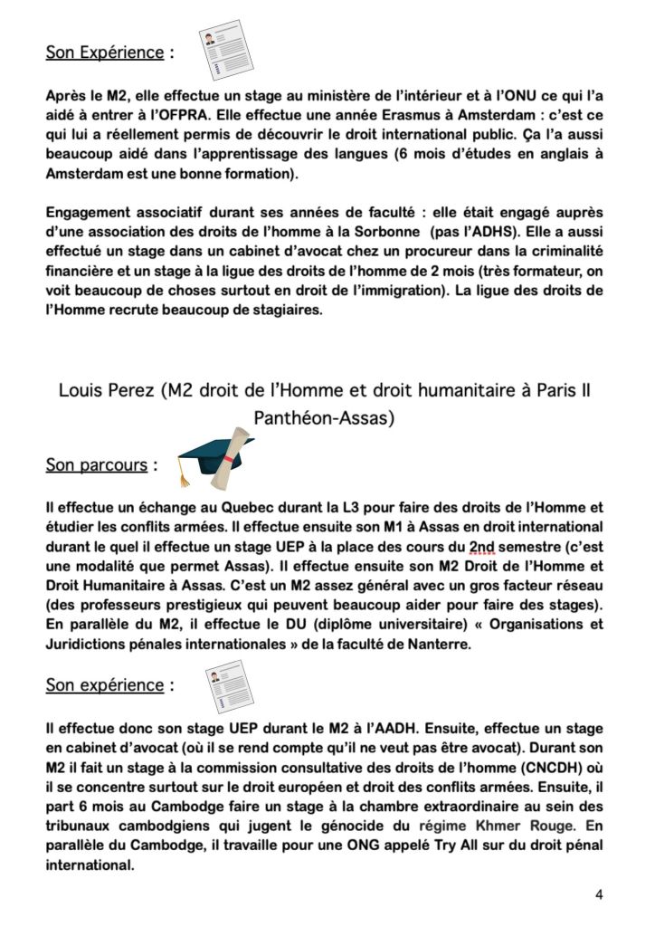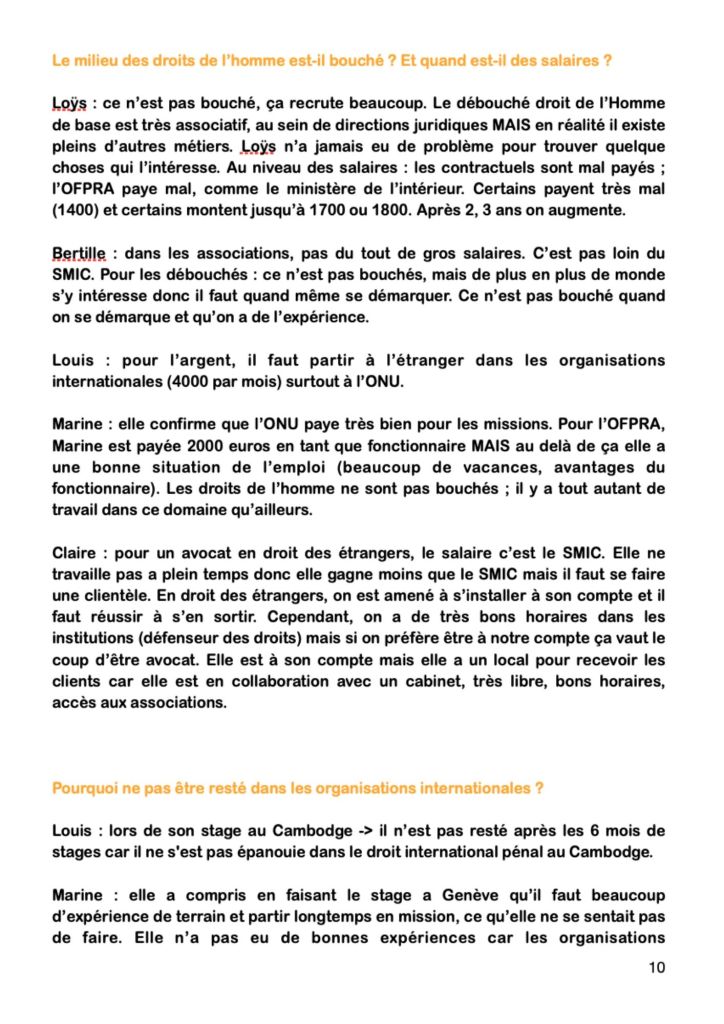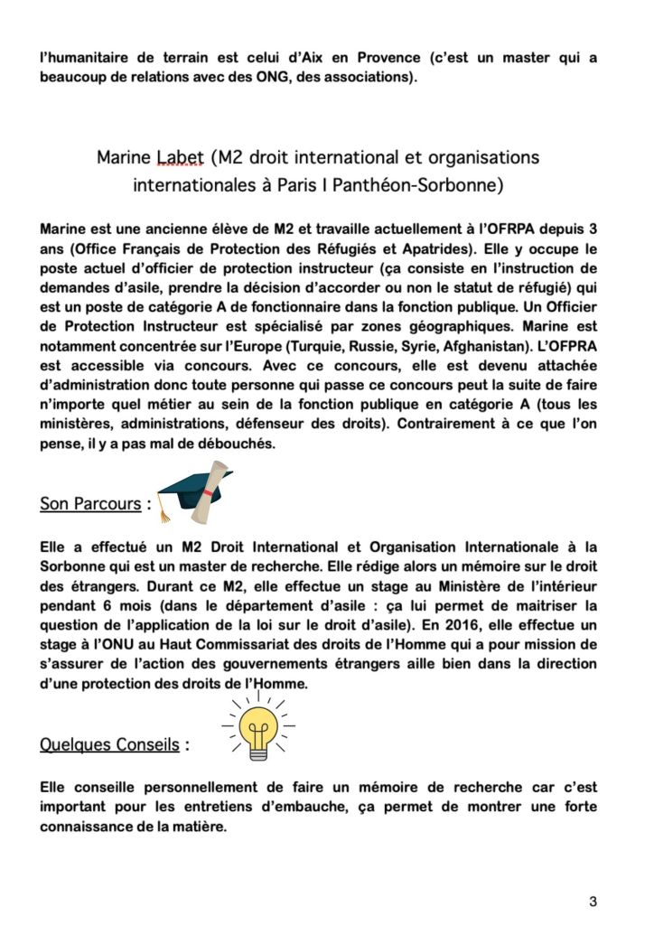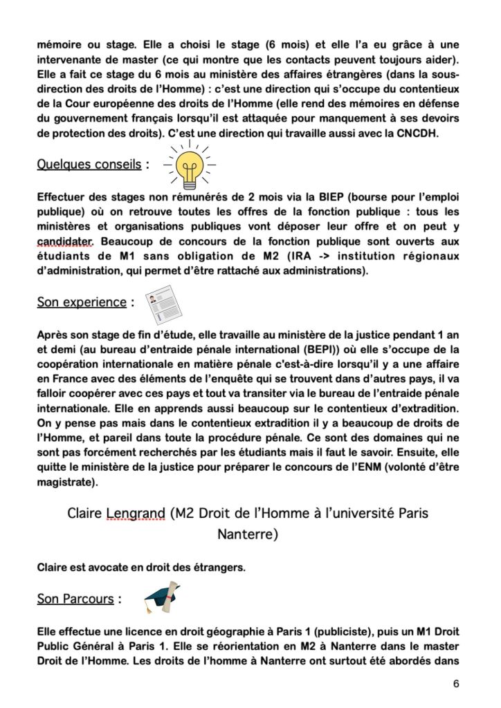 Cette conférence avait pour objectif de présenter aux étudiants différents parcours universitaires, ainsi que les différents débouchés professionnels dans le domaine des droits de l’Homme. Pour cela, nous avons eu le plaisir de recevoir plusieurs ancien.ne.s étudiant.e.s diplômé.e.s récemment.