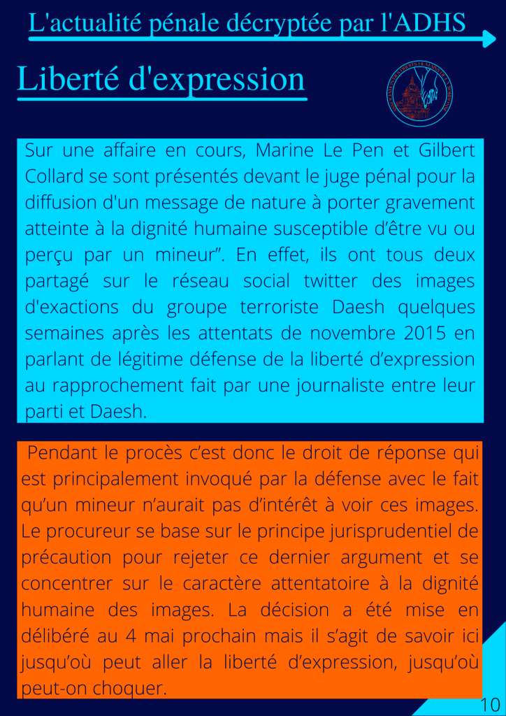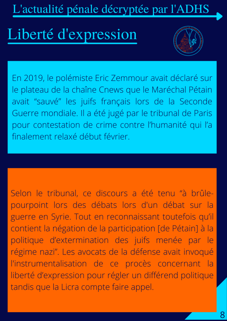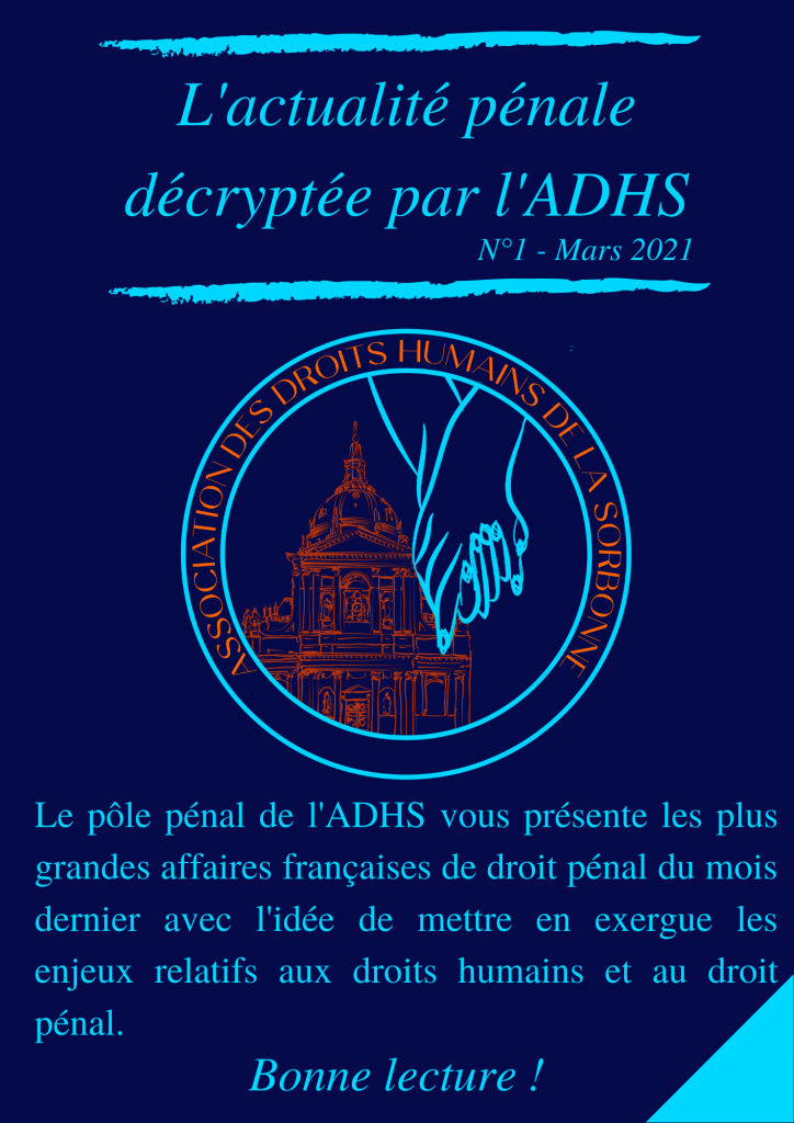 C’est pourquoi le pôle pénal de l’ADHS vous présente les plus grandes affaires françaises de droit pénal du mois de février 2020 avec l’idée de mettre en exergue les enjeux relatifs aux droits humains et au droit pénal.