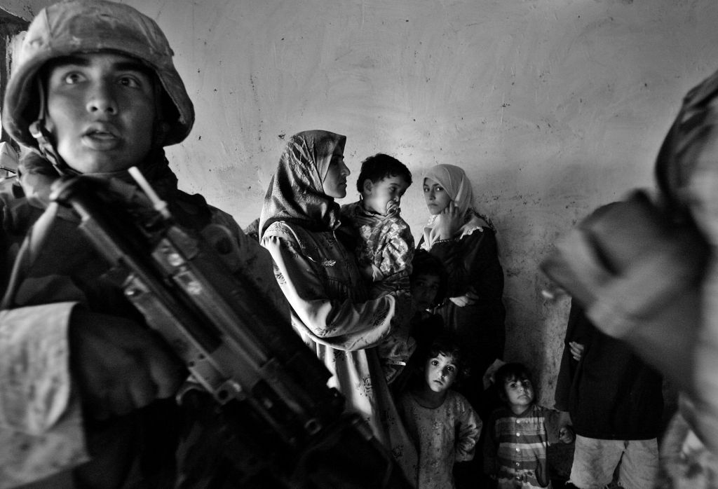 La photographie de guerre a un but autant descriptif qu’informatif. Elle peut déplorer les horreurs que l’on connaît déjà ou amener un débat. Entendre parler d’un conflit et le voir n’a pas le même impact sur l’opinion publique. Il n’y a pas besoin d’avoir des connaissances poussées en géopolitique pour comprendre une photographie. Tout comme il n’y a pas besoin de savoir qui s’affronte et pour quelle raison : on le ressent. La spontanéité d’une photographie a une capacité intense de transmission des émotions qui se prête tout particulièrement à la thématique de guerre. Toutefois, loin d’être seulement dans le pathos, la photographie de guerre rend visible les conflits armés et toutes les situations qui en découlent. En 1944-1945, Lee Miller couvre le conflit pour Vogue en étant accréditée par l’armée américaine. Elle y montre l’interrogatoire d’une Française tondue pour avoir fréquenté des Allemands. Lors de la guerre du Cambodge, le cliché de Françoise Demulder, Entraînement d’enfants soldats dans l’armée du gouvernement de Lon Nol, choque fortement l’opinion publique et interroge sur le cas des enfants soldats. Ou encore, quand Carolyn Cole photographie en vue plongeante des irakiens menottés, par l’armée américaine, faces contre terre. Nous sommes en 2004 lorsqu’ Anja Niedringhaus prend en photo des Marines américains qui enfilent des sacs sur la tête de détenus irakiens, alors même que cette pratique est interdite.