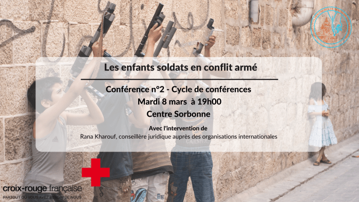 La deuxième conférence de notre cycle portera sur les enfants soldats en conflit armé. En savoir plus sur la Croix-Rouge : La Croix-Rouge française s'emploie à promouvoir le DIH et les principes humanitaires dans des structures éducatives. Reconnaissant l'importance de sensibiliser les décideurs et les guides d’opinion de demain, la Croix-Rouge française plaide en faveur … Lire la suite Les enfants soldats en conflit armé